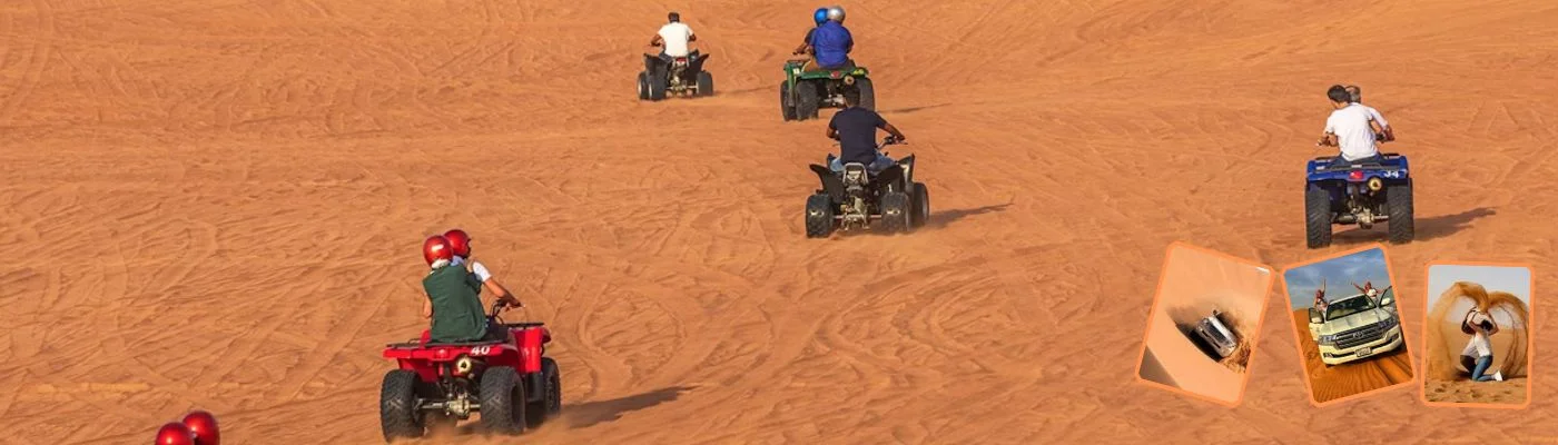 • This quad biking desert safari Dubai experience combines high-speed adventure with the peaceful beauty of the desert. Feel the adrenaline as you conquer towering red dunes, then slow down to enjoy other desert activities, including camel rides, sandboarding, and incredible sunrise photography opportunities.